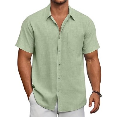 Men's Short Sleeve Casual Button Down Shirts Textured Summer Beach Shirt with Pocket