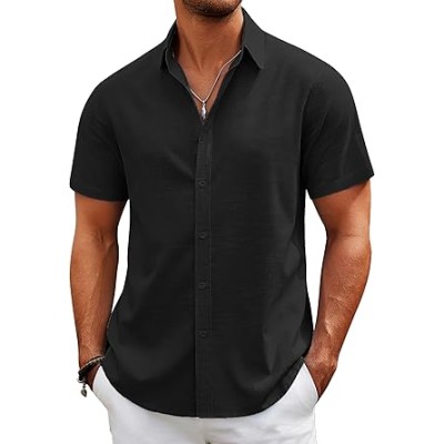 Men's Cotton Linen Short Sleeve Shirts Casual Lightweight Button Down Shirts Vacation Beach Summer Tops with Pocket