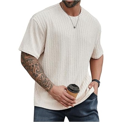 Men's Big and Tall Shirts Textured Knit Tshirt Shirts Casual Summer Tops Trendy