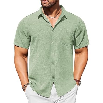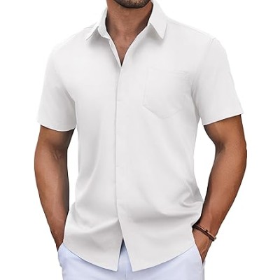 Men's Button Down Shirts Short Sleeve Casual Summer Beach Shirts Vacation Wedding Shirts