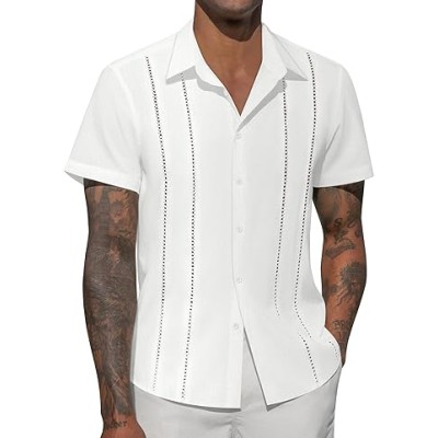 Mens Button Down Short Sleeve Shirts Summer Casual Cuban Guayabera Shirt Beach Wedding Vacation Tops