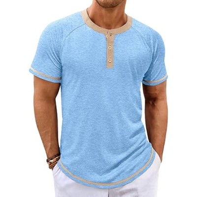 Mens Henley Shirts Short Sleeve Casual Summer Basic T Shirts Button Vintage Lightweight Tee Tops