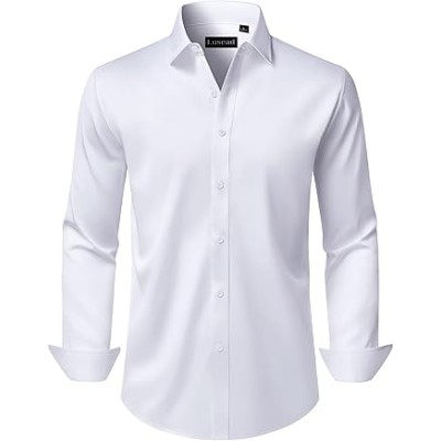 Men's Dress Shirts Long Sleeve Stretch Wrinkle Free Slim Fit Wedding Formal Button Down Shirt